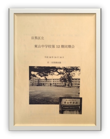 目黒区立東山中学校同窓会12期会設立第一回総会が開かれ、第12期会会則(案)が全員に承認され、1999年(平成11年)10月16日から正式に施行されました。